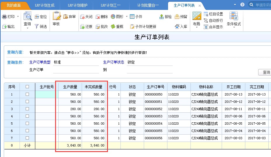 3.下達(dá)生產(chǎn)完成后,相應(yīng)彈出“生產(chǎn)訂單自動生成”界面,可看到下達(dá)的生產(chǎn)計(jì)劃